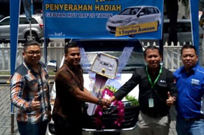 JAKARTA (DP) – Busan Auto Finance (BAF) menyerahkan hadiah utama program Gebyar Hadiah 20 tahun BAF, berupa dua unit Toyota Avanza. Dua pemenang yang beruntung berasal dari Makassar dan Medan.