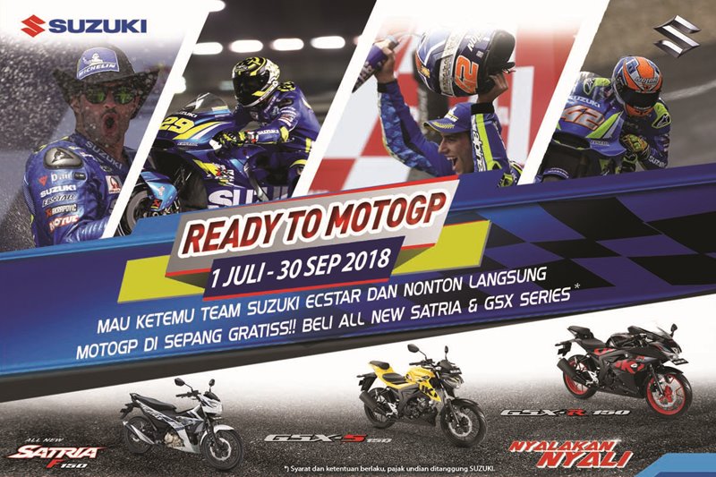 JAKARTA (DP) – PT Suzuki Indomobil Sales (SIS) divisi roda dua kembali menggelar program pembelian bertajuk ‘Suzuki Ready To MotoGP 2018’.