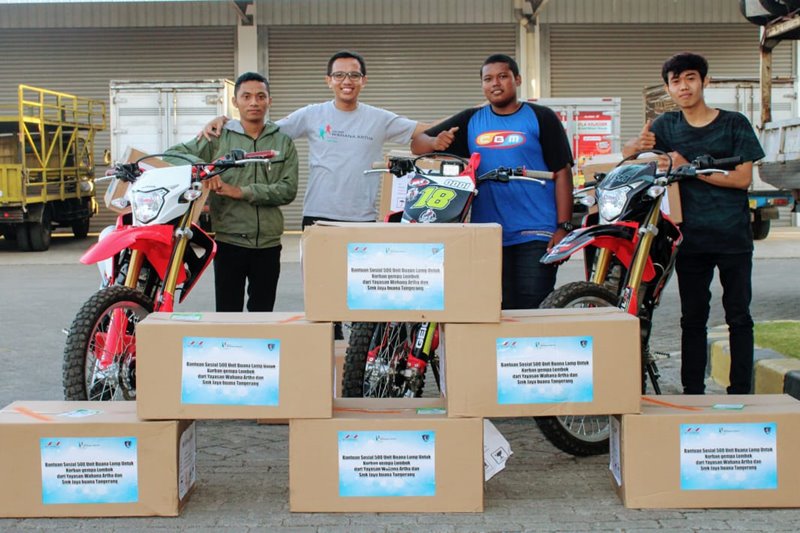 Dalam pendistribusiannya, YWA juga melibatkan tim komunitas Honda CRF Mataram untuk membantu mengirimkan bantuan ke wilayah yang sulit di tempuh akibat dampak gempa.