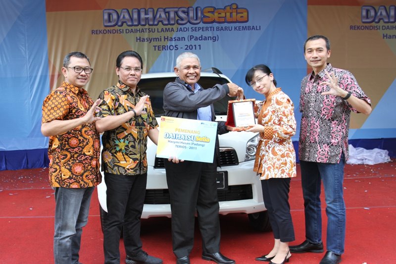 “Mobil Terios saya ini adalah mobil pribadi pertama saya dan istri. Saya suka desainnya yang gagah dan tangguh. Tidak Cuma mobilnya saja yang bagus, bagi saya, pelayanan di bengkel resmi Daihatsu juga membuat saya menjadi semakin setia dengan Daihatsu,” pungkas bapak asal Payakumbuh ini.