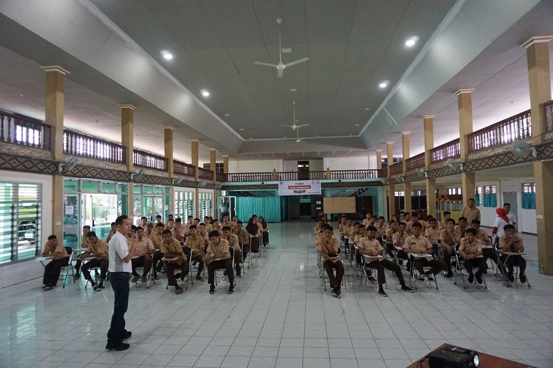 Para siswa SMK di Makassar dalam program FUSO Belajar & Menginspirasi.
