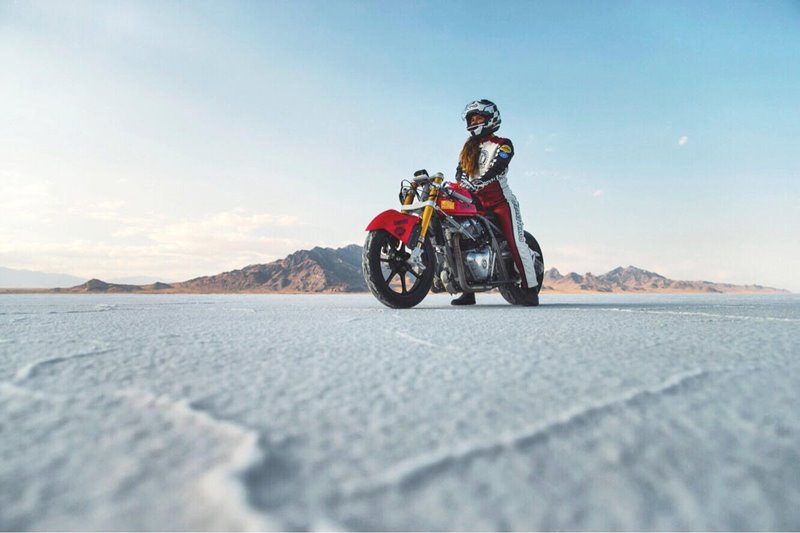 Uniknya lagi, rider yang menunggangi motor berbasiskan produk anyarnya Continental GT 650 adalah seorang wanita berkebangsaan Amerika Serikat, Calya Rivas.