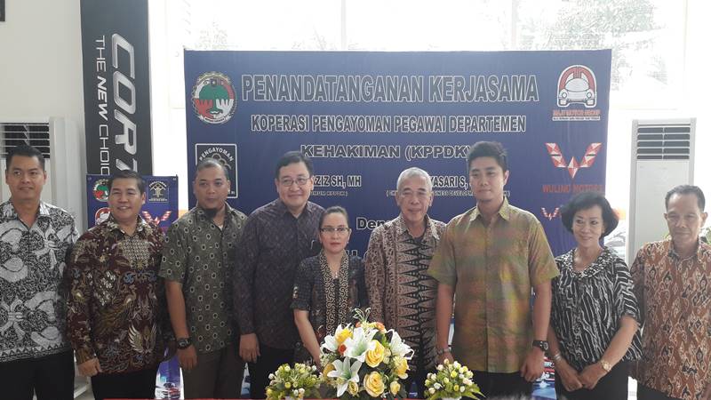 DAPURPACU – PT Maju Global Motor, sebagai mitra diler Wuling Motors (Wuling) resmi bekerja sama dengan Koperasi Pengayoman Pegawai Departemen Hukum dan HAM Republik Indonesia (KPPDK) di Jakarta, Kamis (19/9) lalu, dalam penyediaan lini produk Wuling kepada anggotanya.