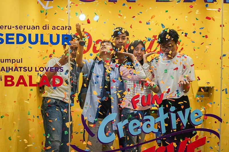 Ada spot foto ala petualang di Daihatsu Terios 7 Wonders, Photo Box Confetti di corner Daihatsu Funday, trampoline photo shoot di corner Daihatsu Astec Open, dan masih banyak lagi spot-spot kekinian lainnya. Tak lupa, beragam hadiah menarik bagi sahabat muda yang mengambil foto di instalasi-instalasi itu juga disediakan.