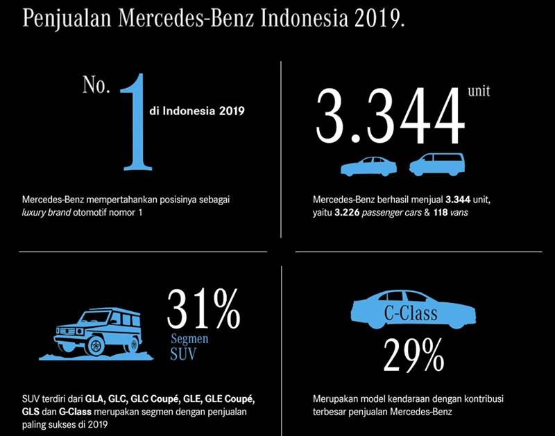 DAPURPACU – PT Mercedes-Benz Distribution Indonesia (MBDI) berhasil meniagakan 3.344 unit mobil penumpang dan van sepanjang tahun lalu. Dengan pencapaian ini cukup memberikan bukti pabrikan asal Jerman tersebut mampu mempertahankan titel penjualan terbanyak diantara merek premium lainnya.