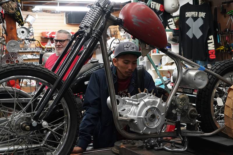 Usai itu, tim Suryanation Motorland bertemu David yang juga berada di wilayah California, tepatnya di Long Beach. Chopper Dave dikenal sebagai pecinta dunia custom, seniman, biker, dan builder yang memiliki passion dan keahlian teknis tinggi.