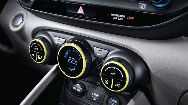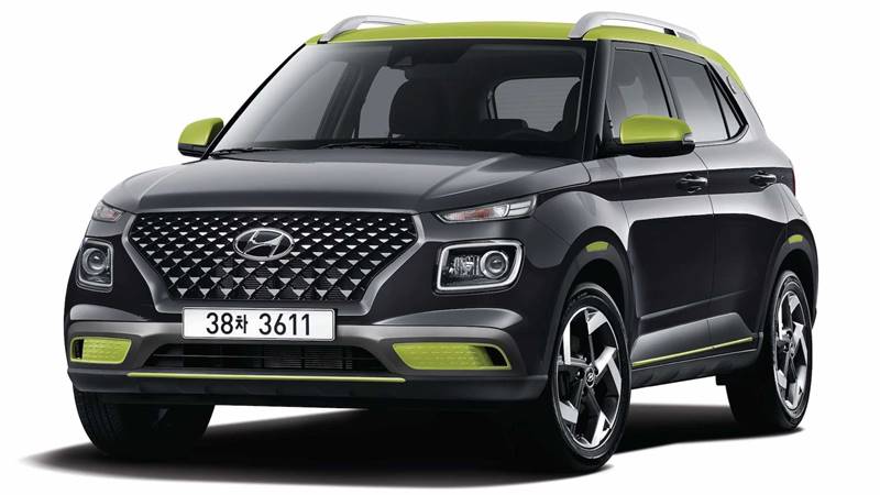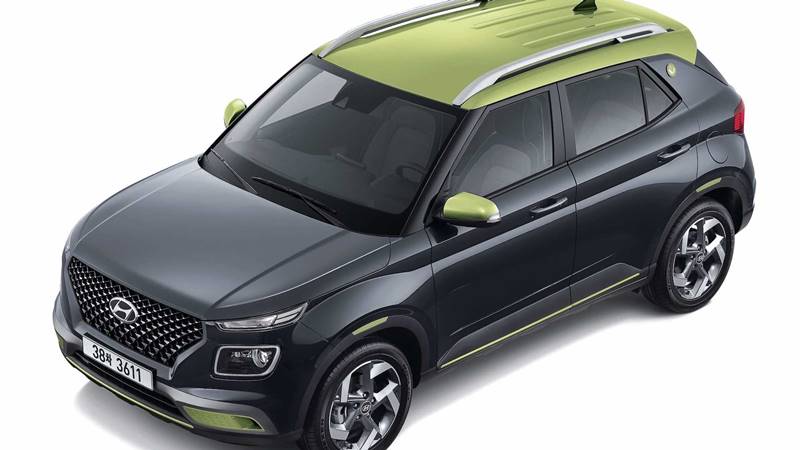 Di posisikan di bawah Kona, mobil ini menjadi crossover termungil di jajaran produk Hyundai. Meski begitu, tampilan funky ditunjukkan lewat grille baru plus aksen hijau (acid yellow) di beberapa sektor, baik di eksterior maupun pada kabinnya.