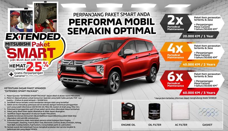 Program perpanjangan dari SMART Package ini telah dimulai sejak 14 September lalu, yang ditujukan bagi pemilik Xpander yang sudah memasuki tahun ketiga. Plus untuk unit yang odometernya telah mencapai 50.000 km.
