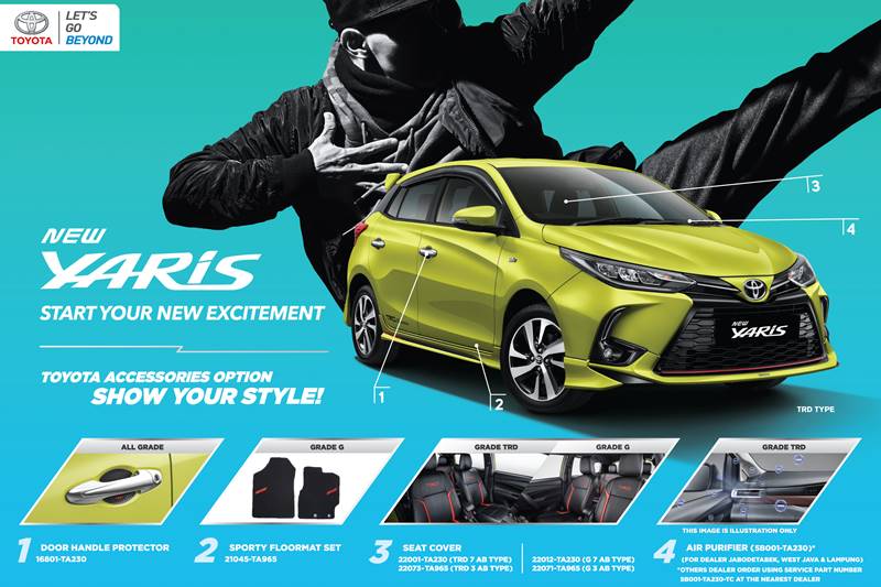 Untuk Yaris, misalnya, kini ada 4 pilihan aksesoris TCO mulai dari Door Handle Protector, Sporty Floor Mat, Seat Cover (G & TRD Sportivo), hingga Air Purifier.