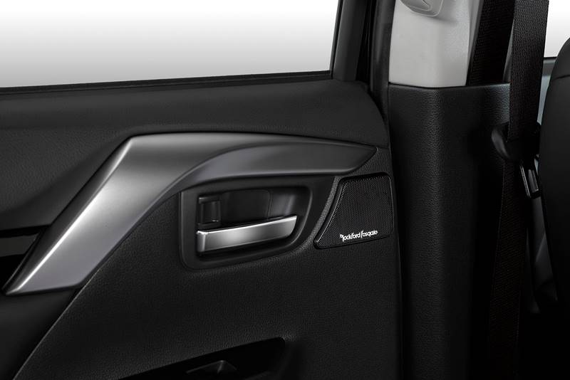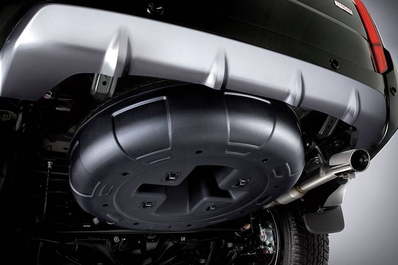 Pemasangan front rear corner garnish, side garnish, rear corner garnish, over fender, special emblem dari Rockford Fosgate, tambahan spare tire cover dan hood emblem, mampu menonjolkan kesan tangguh.