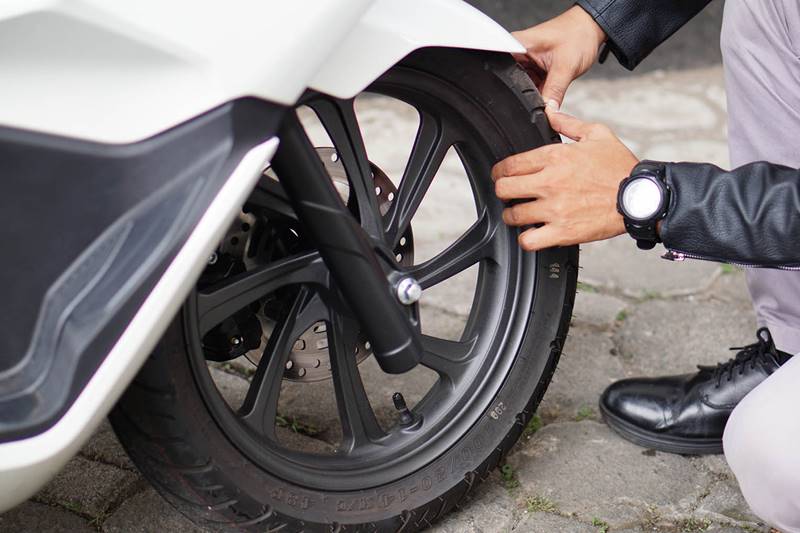 Ketebalan ban yang berkurang bisa membuat pengendara sulit mengontrol setang. Ludhy memaparkan, langkah pertama yang harus diperhatikan pada ban yaitu periksa tekanan angin.