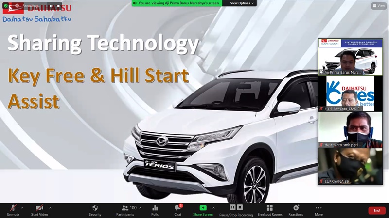 Kali ini, pelatihan secara virtual selama dua jam itu dipaparkan kepada 100 guru Sekolah Menengah Kejuruan binaan Daihatsu di wilayah DKI Jakarta dan Banten, 26 Maret lalu.