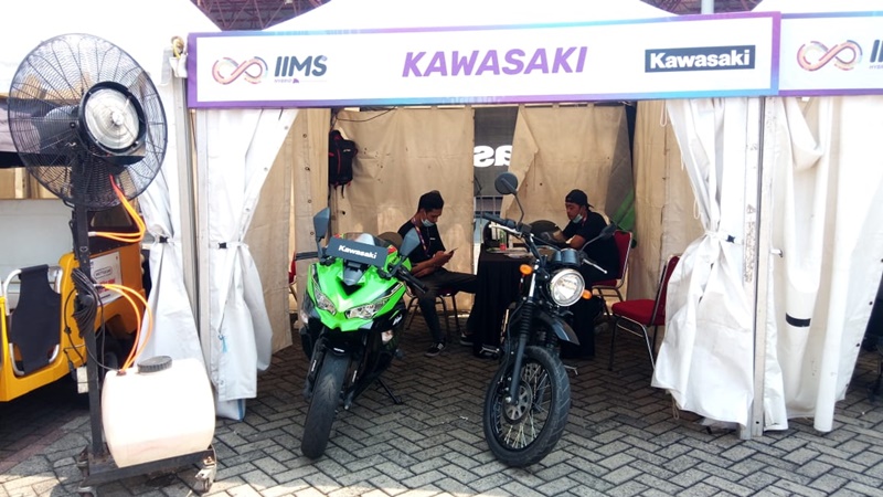 DAPURPACU – Lini produk ‘geng hijau’ Kawasaki mengisi salah satu sudut Hall C1 JIExpo Kemayoran, dalam rangka berpartisipasi pada pameran Indonesia International Motor Show (IIMS) Hybrid 2021.