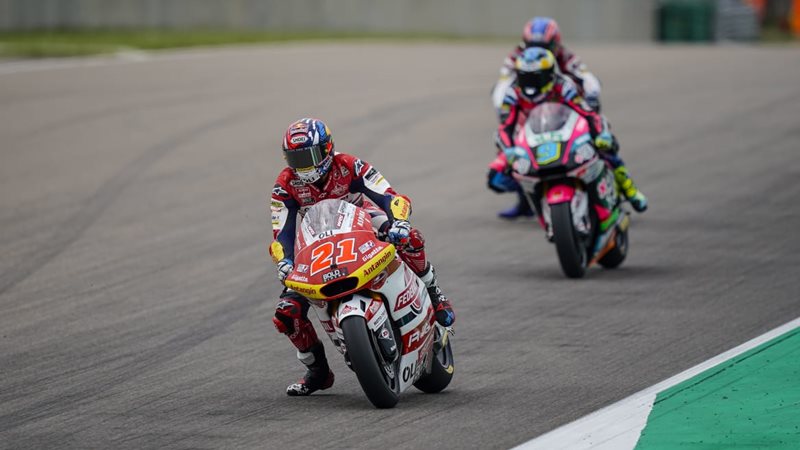 DAPURPACU – Moto2 Jerman dapat dikatakan menjadi masa kebangkitan bagi pebalap Federal Oil Gresini Moto2 khususnya bagi Fabio Di Giannantonio sepanjang melakoni 28 lap di Sirkuit Sachsenring, Minggu (20/6).