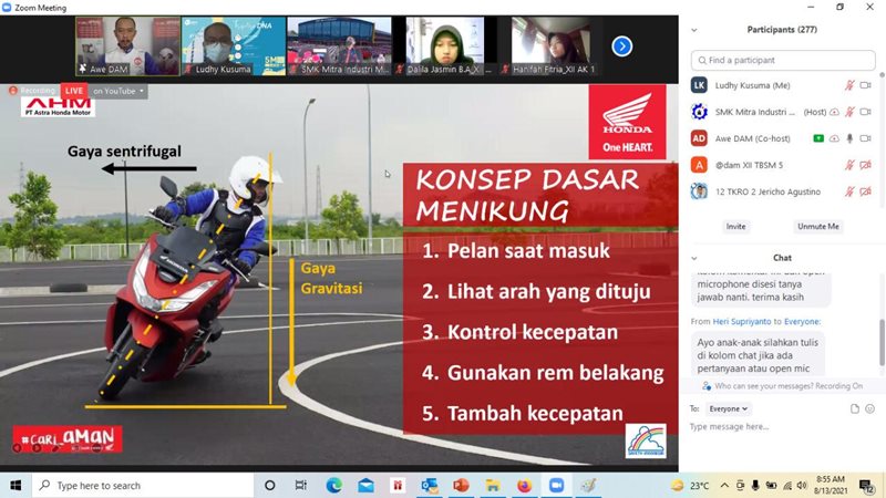 Itu dibuktikan sepanjang Agustus ini sebanyak 1.500 pelajar dan 100 guru SMK Mitra Industri MM2100 Cikarang mengikuti pelatihan safety riding yang dibagi dalam 4 batch.