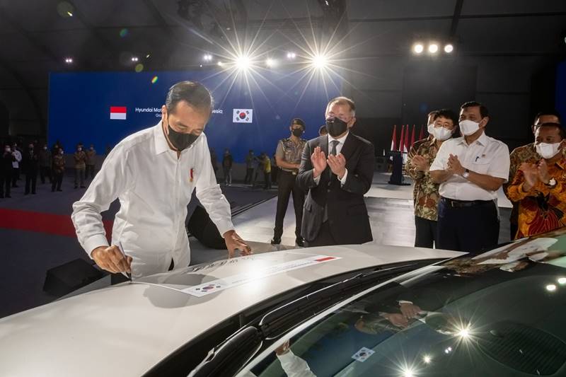 Presiden Joko Widodo (Jokowi) mengatakan, berdirinya pabrik Hyundai merupakan momen transisi besar-besaran dari mobil yang menggunakan bahan bakar fossil ke kendaraan listrik yang ramah lingkungan.