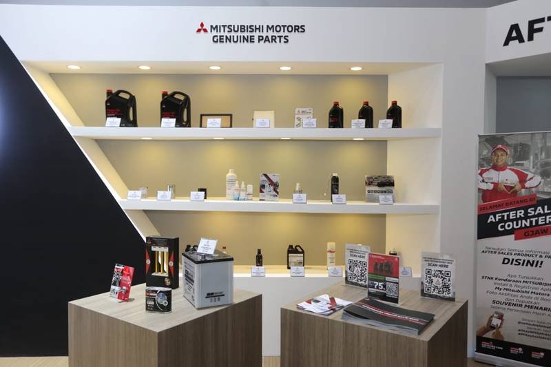 Tak hanya dari sisi penjualan kendaraan, produk-produk purnajual seperti suku cadang dan aksesoris juga ditampilkan pada Aftersales Corner di booth Mitsubishi.