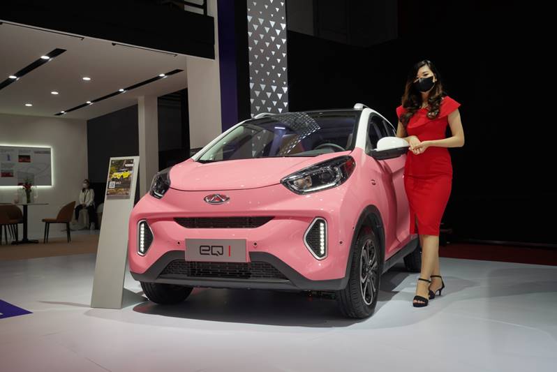 Sedangkan untuk EQ1 ditampilkan dalam balutan warna pink. Mobil listrik mungil bermesin 100 persen listrik ini bertenaga 55 KW (73 hp), yang diklaim akselerasi 0-50 km/jam dicapai dalam waktu 5 detik dengan kecepatan maksimum 120 km/jam.