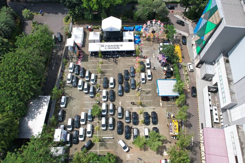 Unit Mitsubishi Xpander Cross yang diserahkan, kemudian disusun sedemikian rupa menyerupai huruf X yang merupakan identitas dari Xpander itu sendiri.