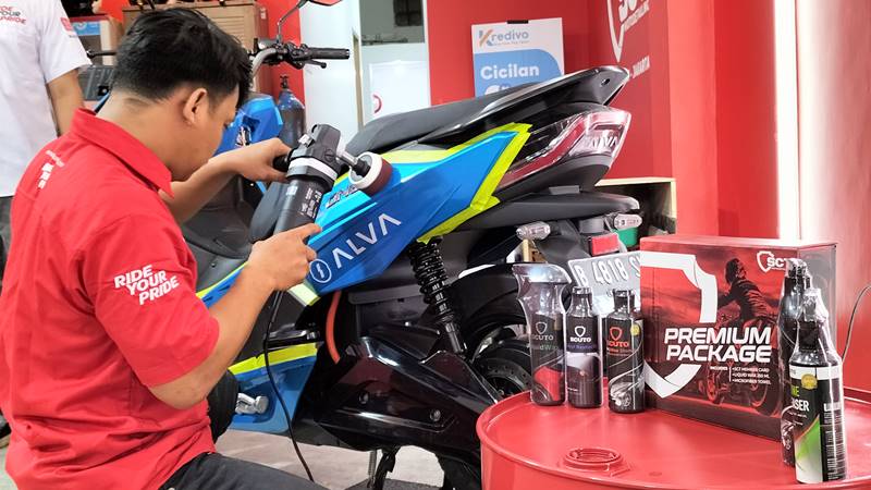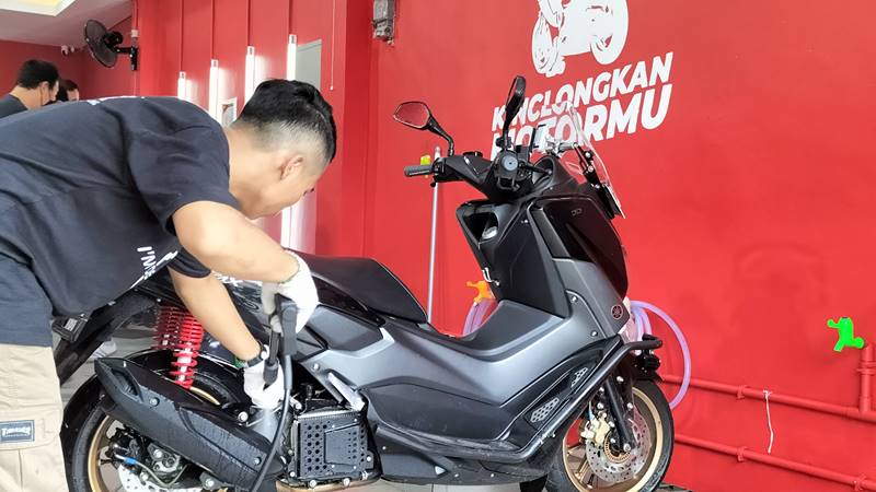 Adapun salah satu treatment-nya yaitu proteksi ekstra untuk sepeda motor dari Coating Nano Premium dengan lapisan nano ceramic+ 9H (hardness).