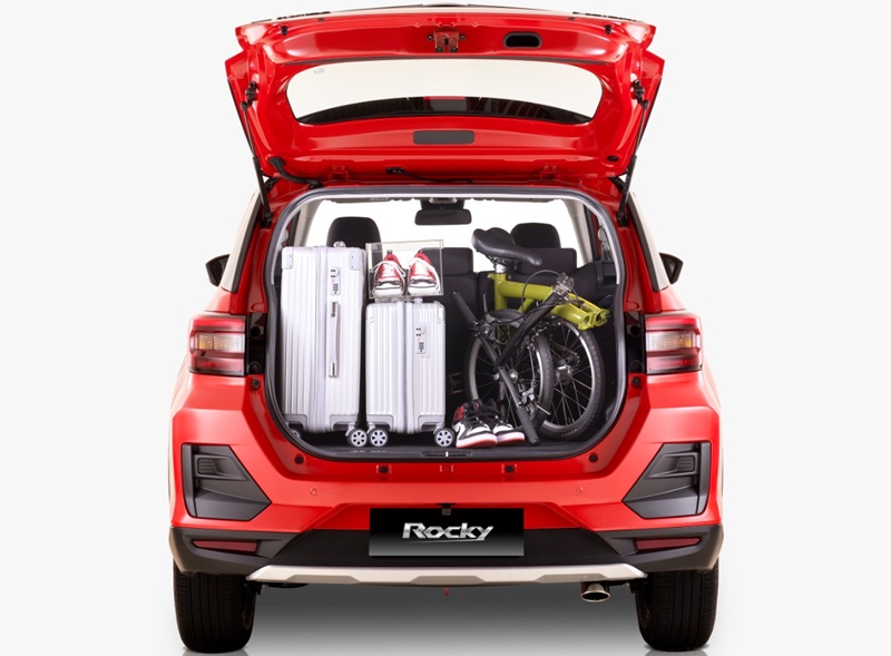 Bagasi Rocky teranyar tidak lagi dilengkapi ban serep, membuat bagasinya menjadi lebih luas. Bahkan, bagasinya dapat diatur menjadi dua tingkat dengan kapasitas 303 L dan 369 L.