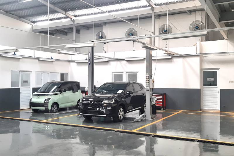 Di area showroom bisa memajang lima unit mobil Wuling, sementara di area bengkel tersedia empat service bay dan satu area cleaning bay, plus charging pile untuk melakukan pengisian daya mobil listrik.