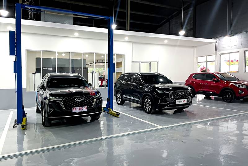 Area showroom menampilkan beragam model Chery terbaru, sementara di bengkel dilengkapi peralatan modern sesuai standar PT CSI, hingga tersedia area suku cadang demi memenuhi kebutuhan konsumen.