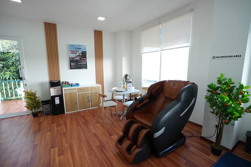Tersedia fasilitas lain yaitu ruang istirahat nyaman plus AC, wifi gratis, TV satelit dan kursi pijat otomatis. Termasuk kids dan game corner untuk anak-anak ketika menunggu servis mobil.