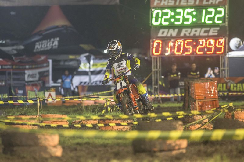 Para pebalap elite motocross dan grasstrack Tanah Air saling adu cepat menaklukkan ganasnya beragam obstacle di tengah kondisi trek yang licin dan berlumpur akibat hujan.