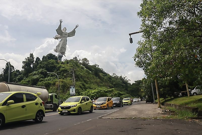 Ikon-ikon itu seperti Patung Yesus Memberkati dan Jembatan I.R. Soekarno, menampilkan pemandangan konvoi penuh warna dan energi positif di tengah kota.
