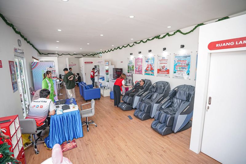 Fasilitas ini dirancang sebagai ruang istirahat nyaman bagi pemudik, lengkap dengan layanan gratis seperti makanan ringan, minuman, cek kesehatan, mushola, cukur rambut, manicure, kursi pijat, ruang laktasi, hingga area bermain anak.