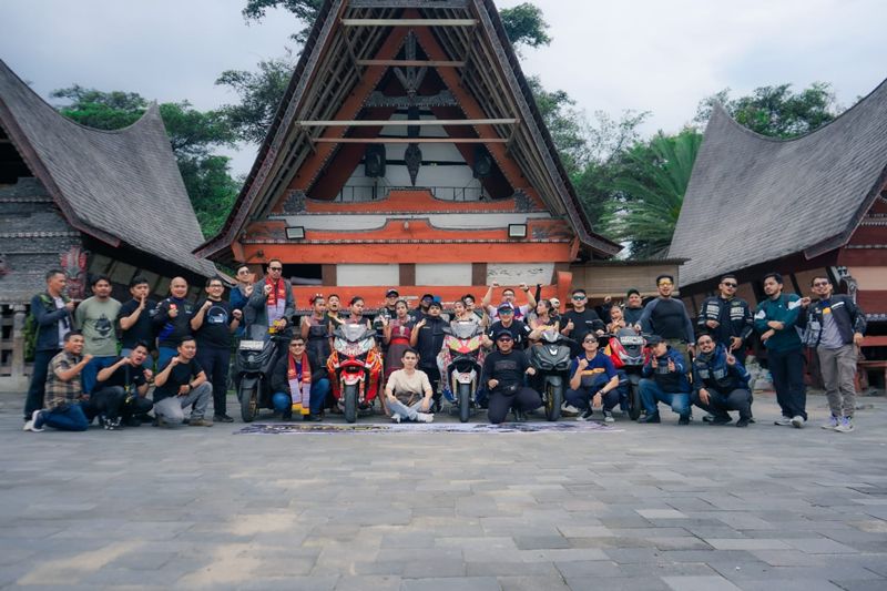 Komunitas MAXI Yamaha di Sumatera Utara menyambut peserta dengan hangat, sekaligus menyerahkan miniatur rumah adat Batak sebagai simbol apresiasi.