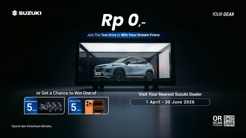 Program test drive Suzuki Fronx berhadiah berlaku secara nasional, sehingga bisa diikuti oleh siapa pun dan akan difasilitasi ratusan jaringan diler resmi Suzuki di Indonesia.
